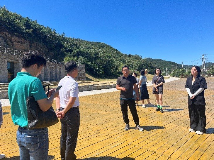 第二站,团队成员到达了羊亭镇,考察了贝草夼村和宝石山片区。贝草夼村位于里口山近郊休闲样板片区,已成功打造为集乡村休闲旅游、田园亲子体验、生态居住餐饮于一体的田园综合体。贝草夼村还充分利用丰富的红色资源,建成独具特色的地下交通站纪念馆,成为各单位开展党史学习教育的红色主阵地之一。